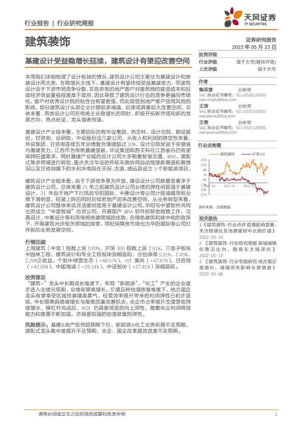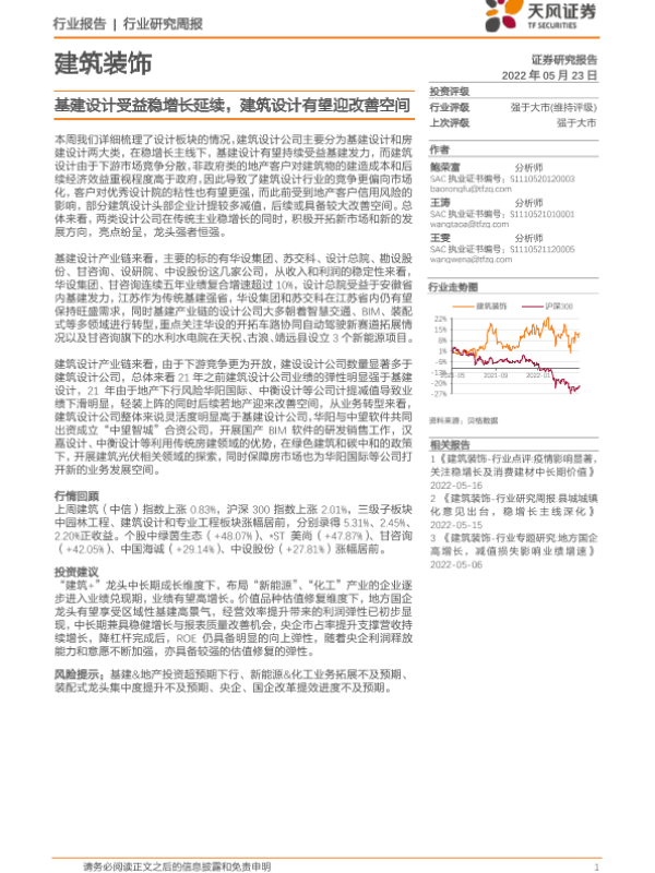【天风证券】【20220523】建筑装饰:基建设计受益稳增长延续,建筑设计有望迎改善空间-8页