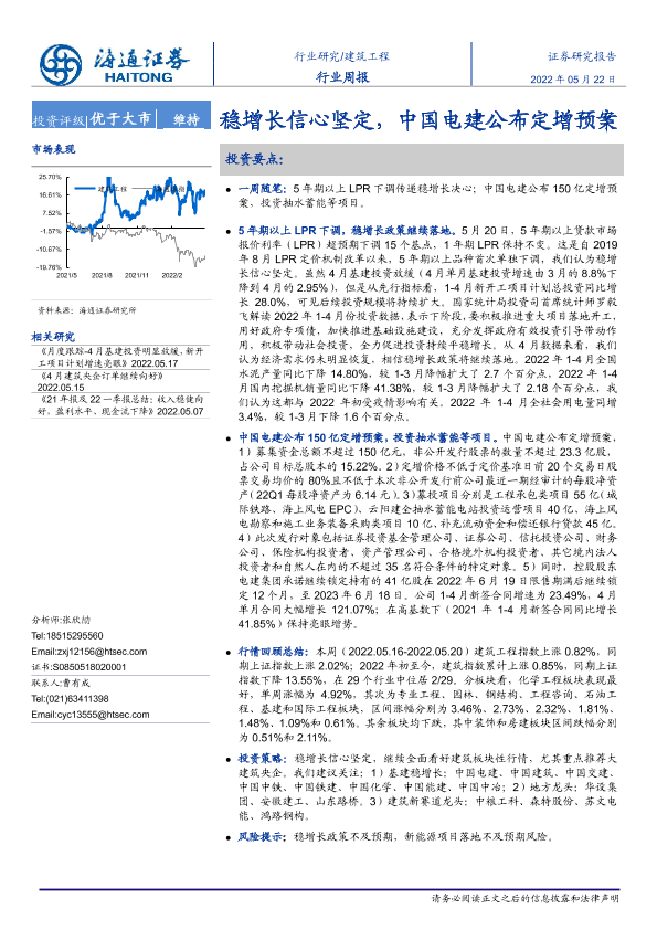 【海通证券】【20220522】建筑工程行业周报:稳增长信心坚定,中国电建公布定增预案-6页