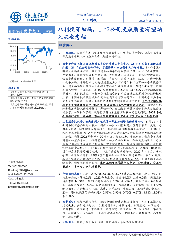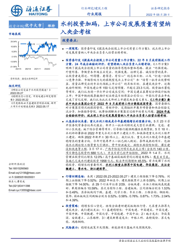 【海通证券】【20220529】建筑工程行业周报:水利投资加码,上市公司发展质量有望纳入央企考核-6页