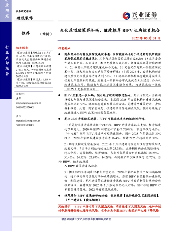 【兴业证券】【20220531】光伏屋顶政策再加码,继续推荐BIPV板块投资机会-4页