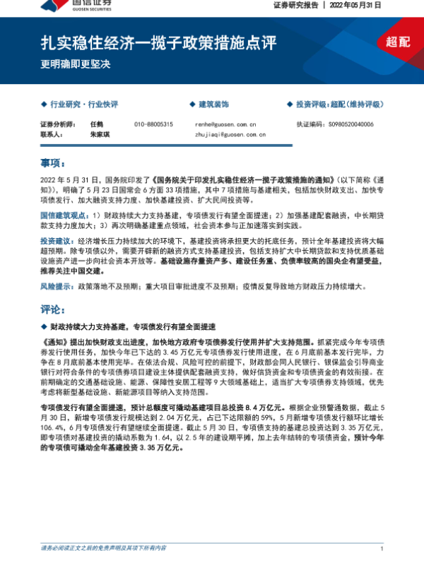 【国信证券】【20220531】扎实稳住经济一揽子政策措施点评-更明确即更坚决-5页