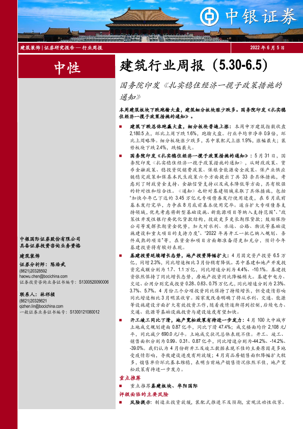 【中银证券】【20220605】建筑行业周报:国务院印发《扎实稳住经济一揽子政策措施的通知》-16页