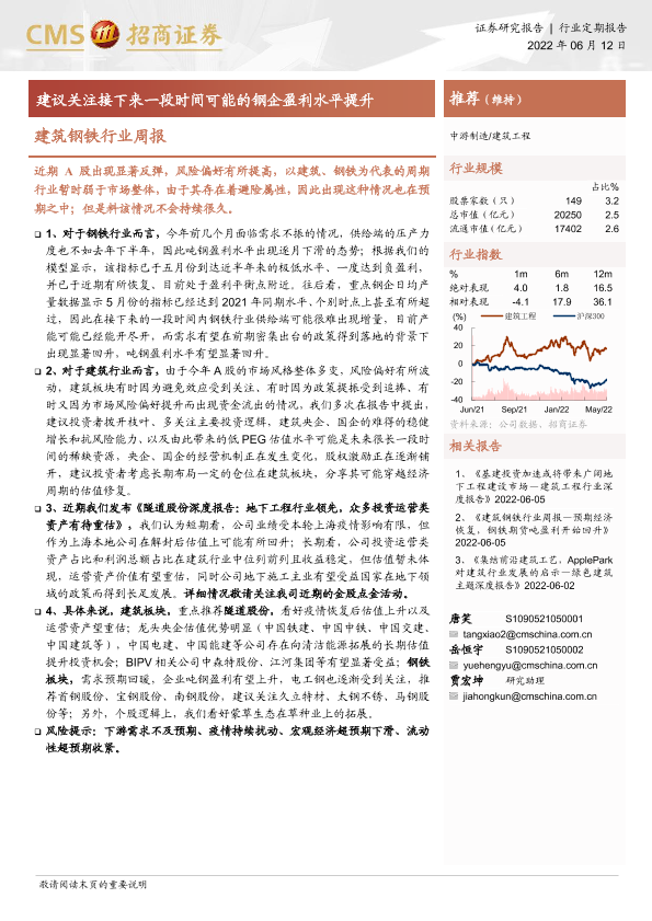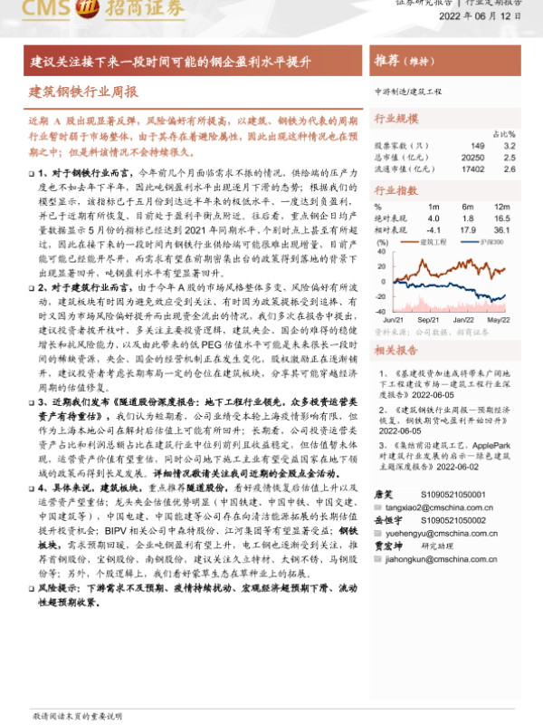 【海通证券】【20220612】建筑钢铁行业周报:建议关注接下来一段时间可能的钢企盈利水平提升-3页
