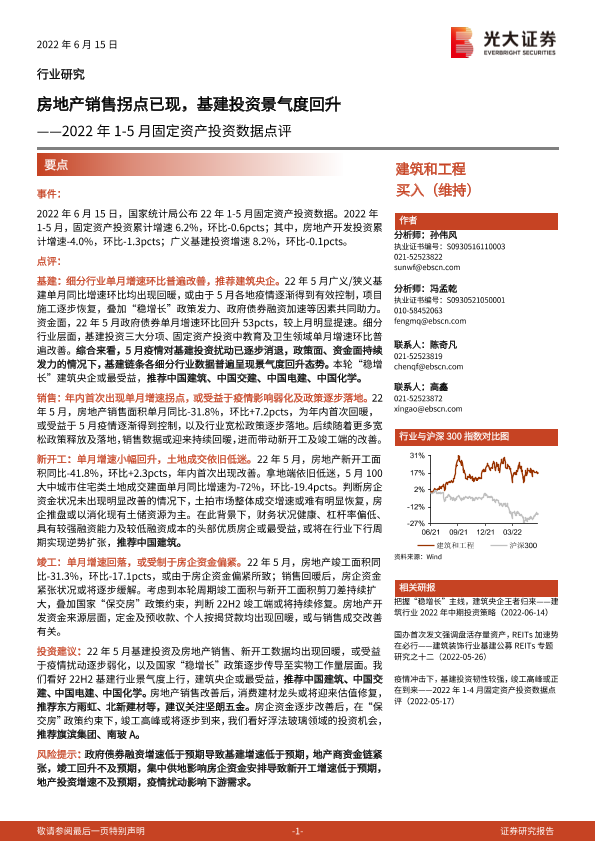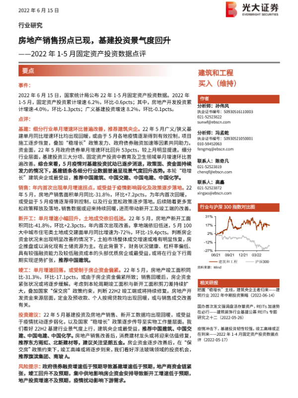 【光大证券】【20220615】2022年1-5月固定资产投资数据点评:房地产销售拐点已现,基建投资景气度回升-9页