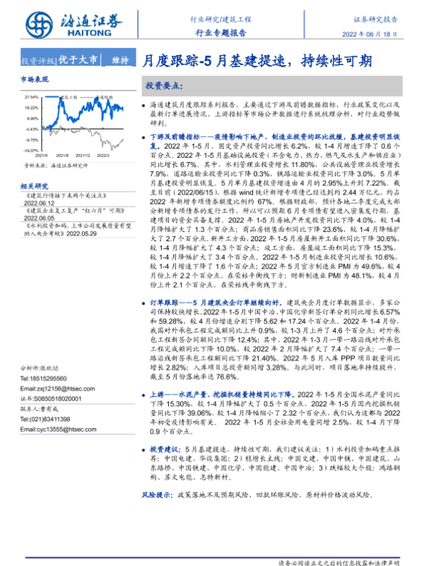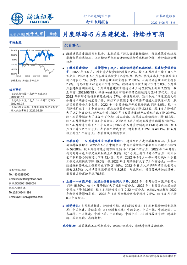 【海通证券】【20220618】建筑工程行业月度跟踪-5月基建提速,持续性可期-14页