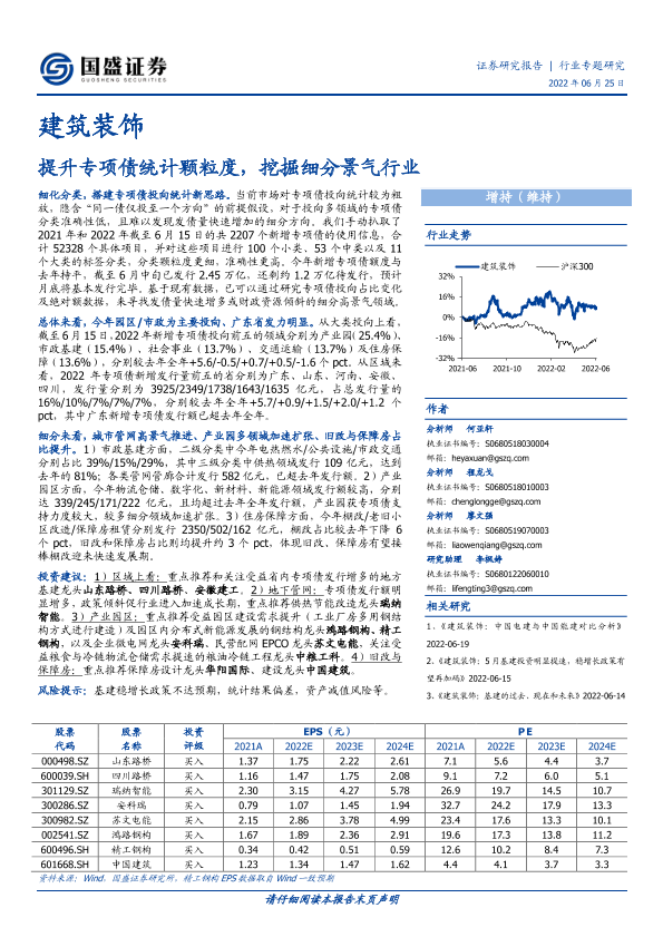 【国盛证券】【20220625】建筑装饰行业专题研究:提升专项债统计颗粒度,挖掘细分景气行业-12页