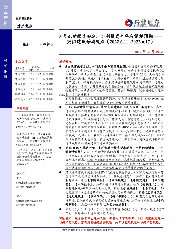 【兴业证券】【20220619】5月基建投资加速,水利投资全年有望超预期-43页