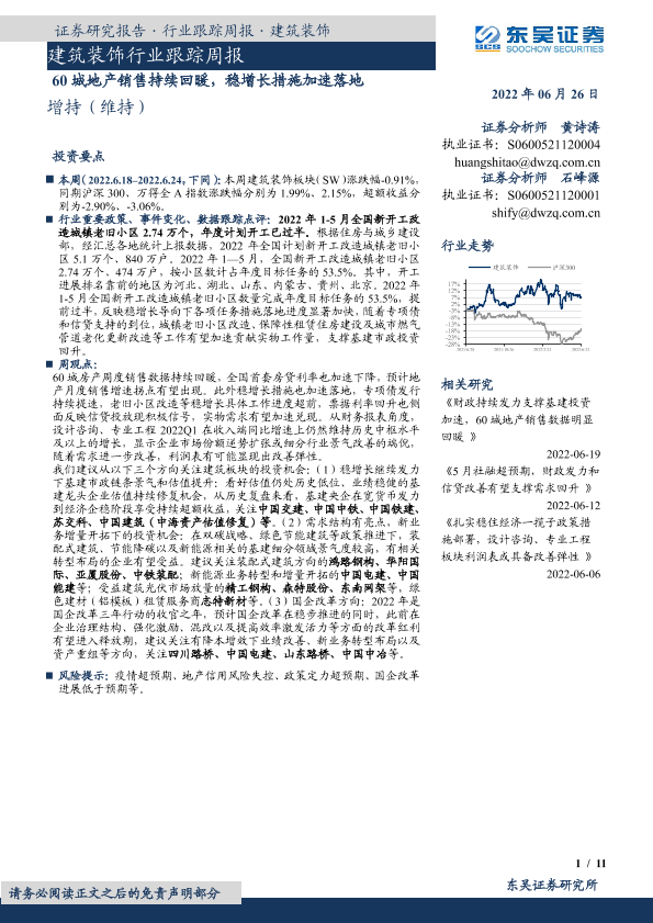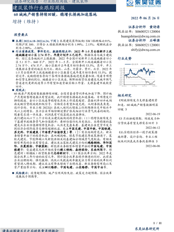 【东吴证券】【20220626】建筑装饰行业跟踪周报:60城地产销售持续回暖,稳增长措施加速落地-11页