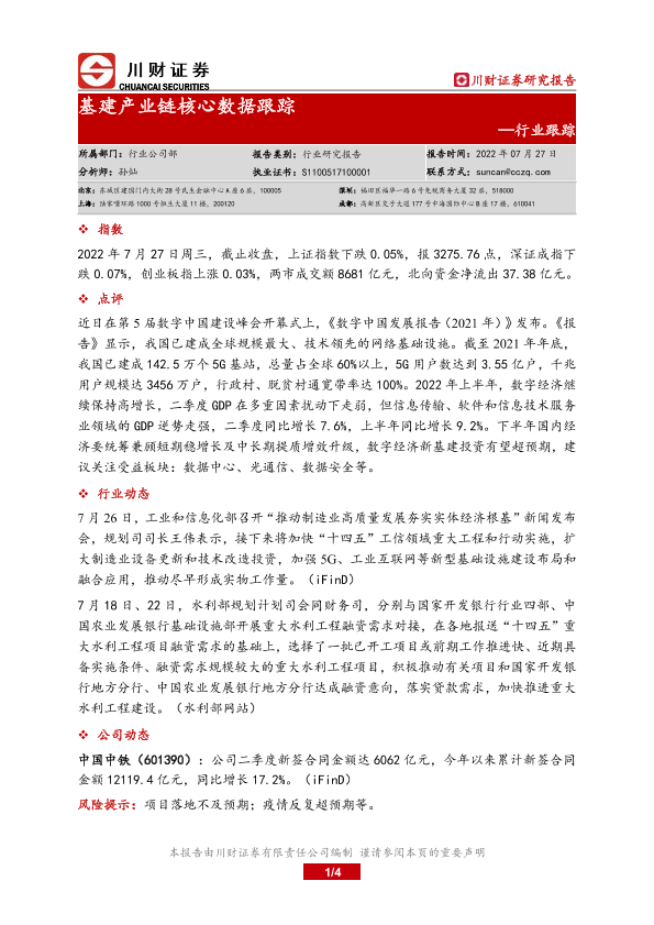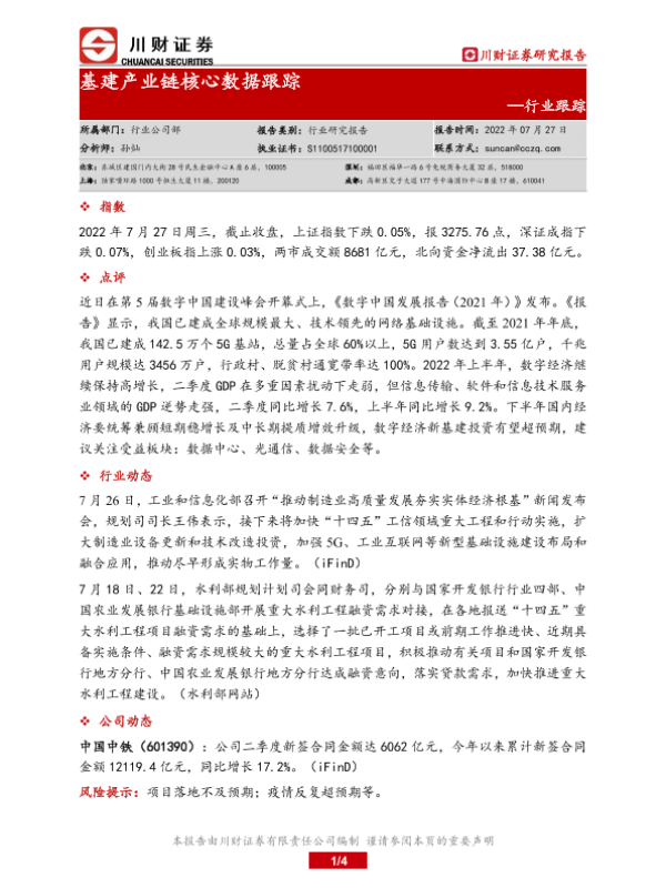 【川财证券】【20220727】基建产业链核心数据跟踪-4页