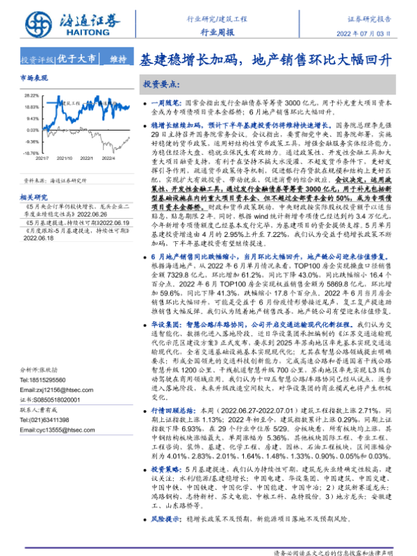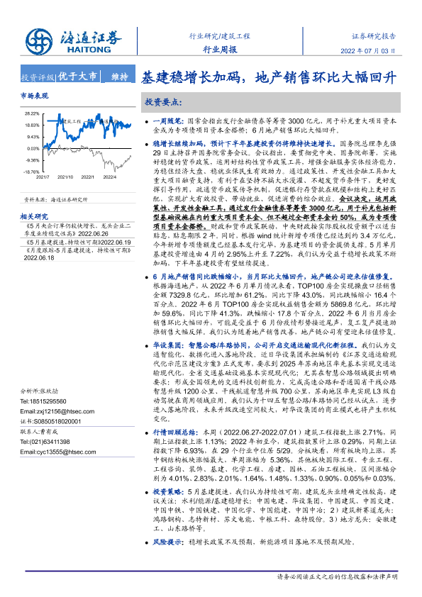 【海通证券】【20220703】建筑工程行业周报:基建稳增长加码,地产销售环比大幅回升-6页