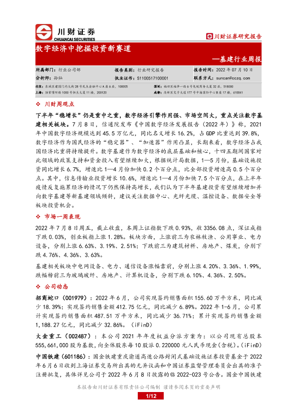 【川财证券】【20220710】基建行业周报:数字经济中挖掘投资新赛道-12页