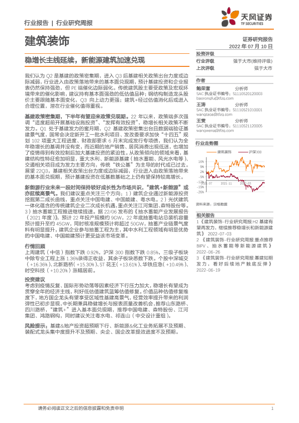 【天风证券】【20220710】建筑装饰行业研究周报:稳增长主线延续,新能源建筑加速兑现-7页