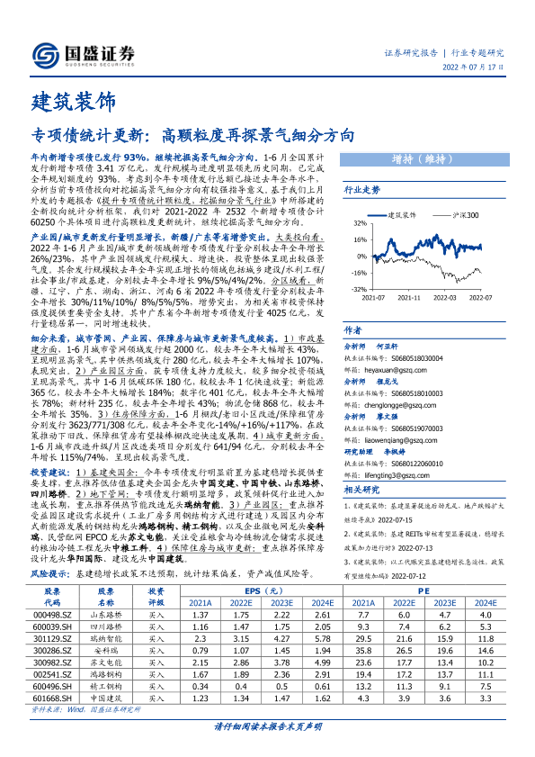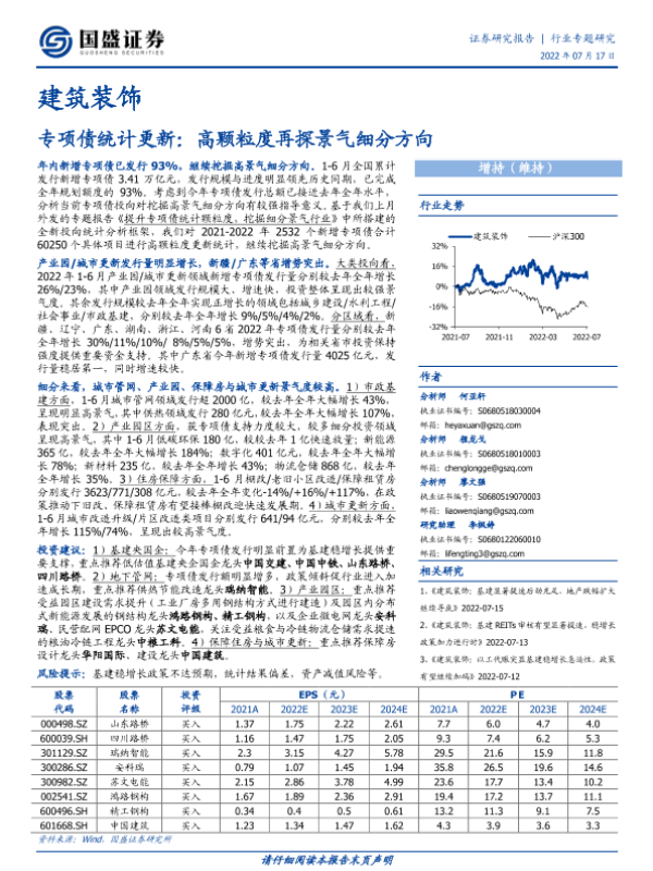 【国盛证券】【20220717】建筑装饰:专项债统计更新:高颗粒度再探景气细分方向-13页