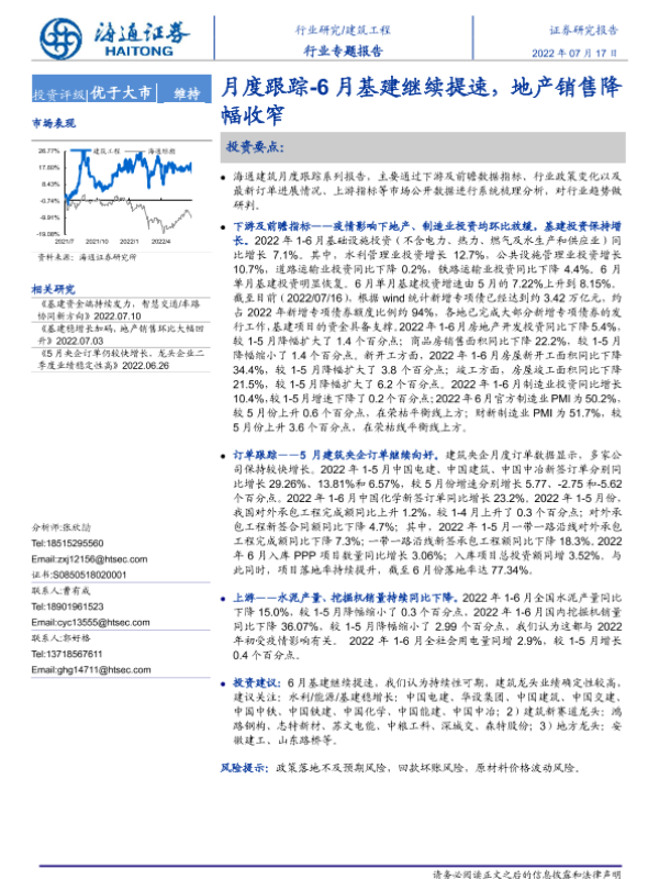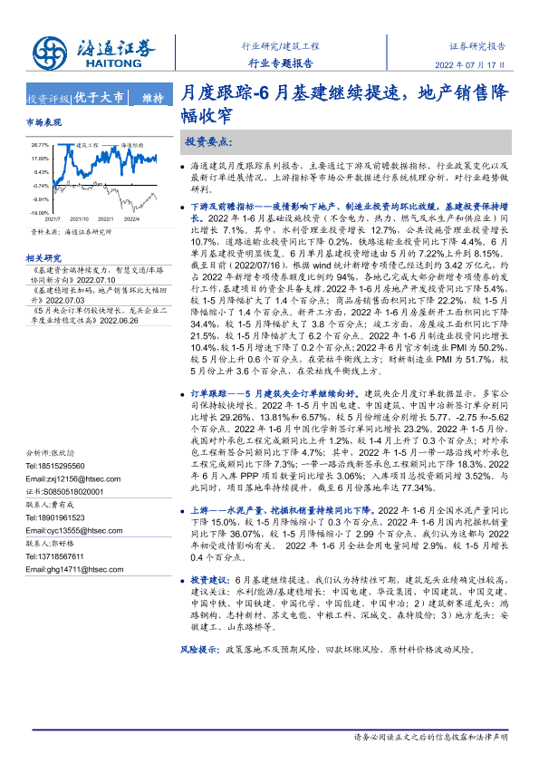 【海通证券】【20220717】建筑工程行业专题报告:月度跟踪-6月基建继续提速,地产销售降幅收窄-14页