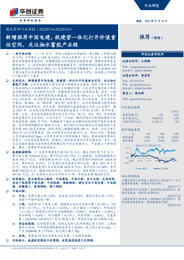 【华创证券】【20220724】建筑装饰行业周报:新增推荐中国电建,投建营一体化打开价值重估空间,关注抽水蓄能产业链-18页