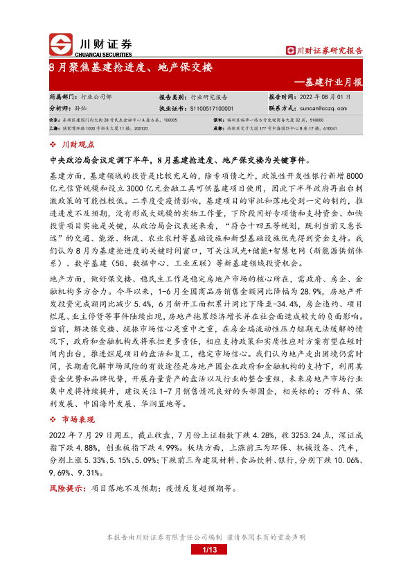 【川财证券】【20220801】8月聚焦基建抢进度、地产保交楼-13页