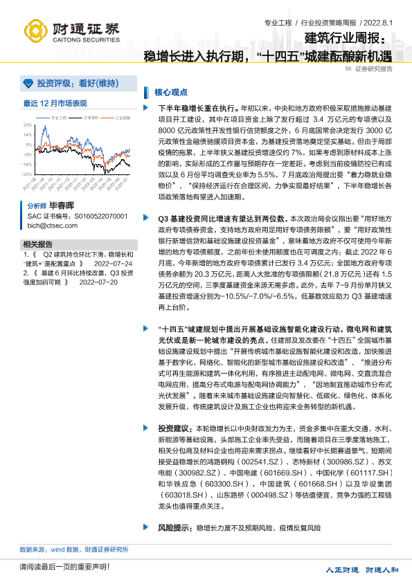 【财通证券】【20220801】建筑行业周报:稳增长进入执行期,“十四五”城建酝酿新机遇-2页