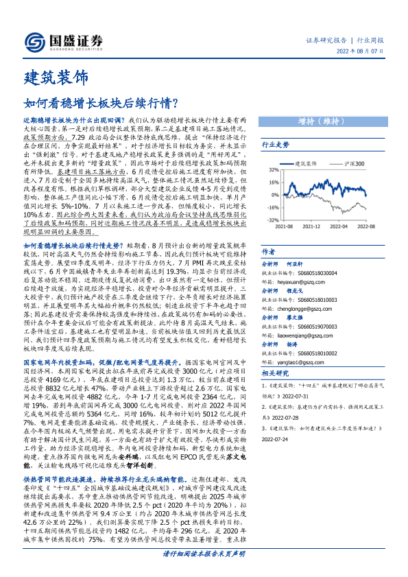 【国盛证券】【20220807】建筑装饰行业周报:如何看稳增长板块后续行情?-10页