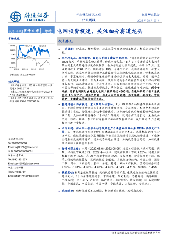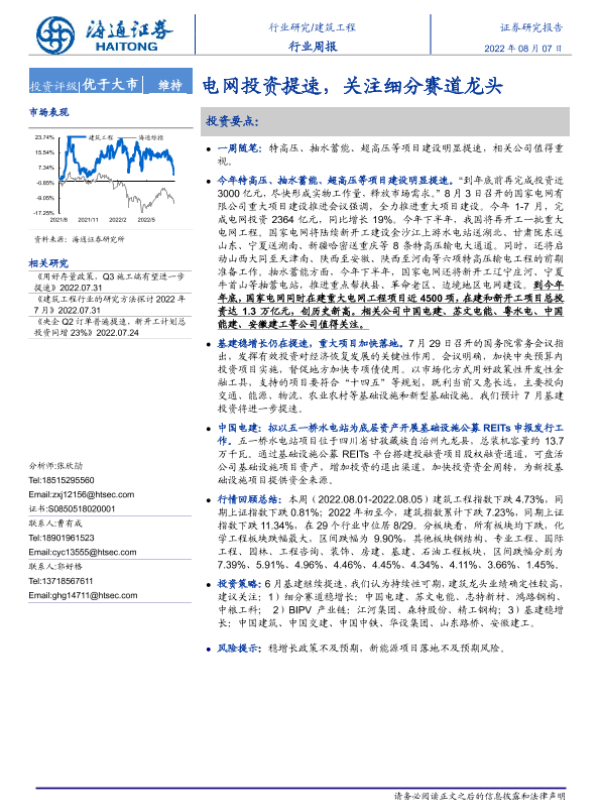 【海通证券】【20220807】建筑工程行业周报:电网投资提速,关注细分赛道龙头-6页