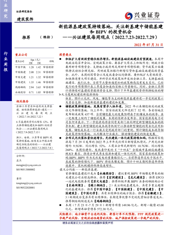 【兴业证券】【20220731】新能源基建政策持续落地,关注新基建中储能基建和BIPV的投资机会-40页