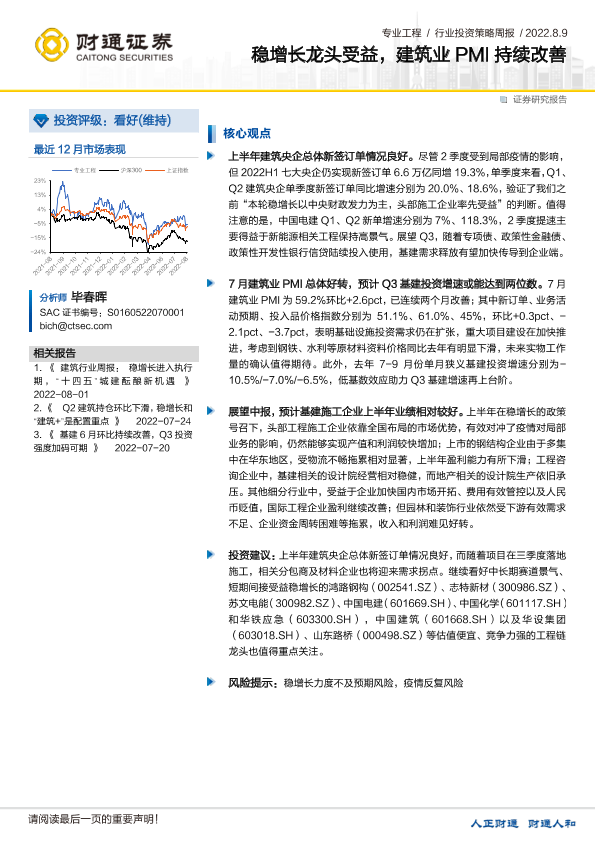 【财通证券】【20220809】专业工程行业投资策略周报:稳增长龙头受益,建筑业PMI持续改善-2页