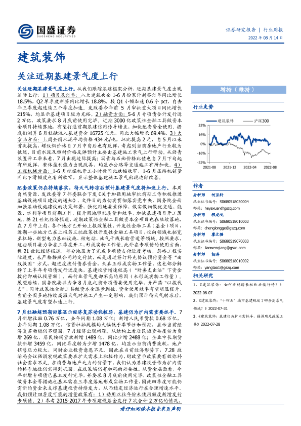 【国盛证券】【20220814】建筑装饰行业周报:关注近期基建景气度上行-13页