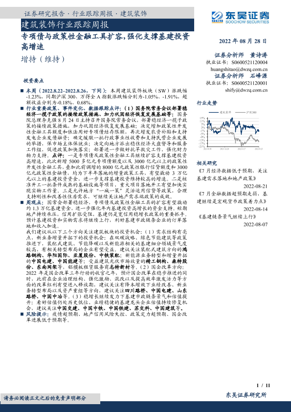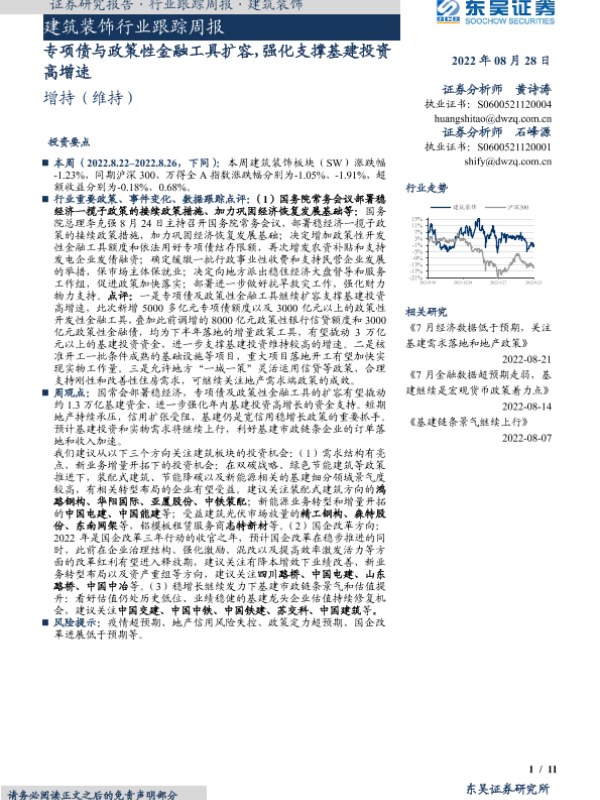 【东吴证券】【20220828】建筑装饰行业跟踪周报:专项债与政策性金融工具扩容,强化支撑基建投资高增速-11页