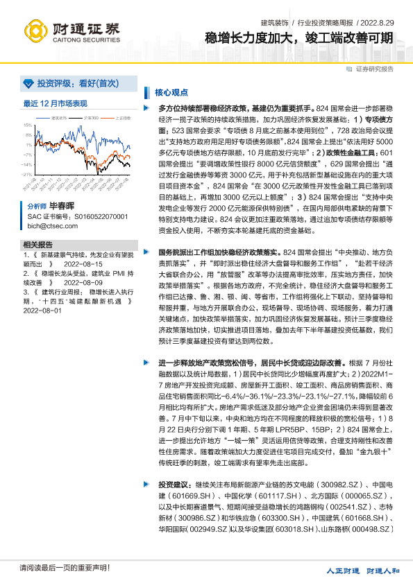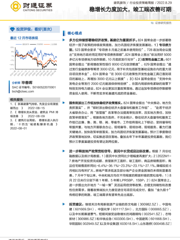 【财通证券】【20220829】建筑装饰行业投资策略周报:稳增长力度加大,竣工端改善可期-3页