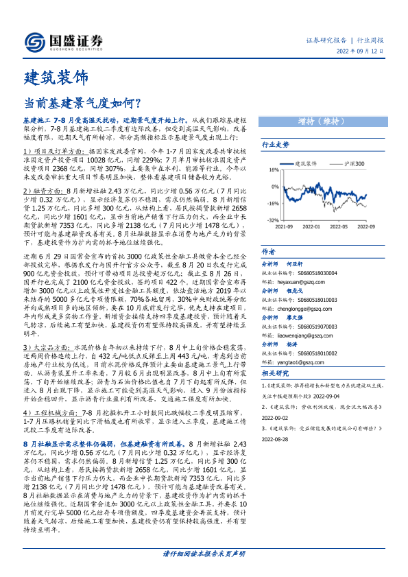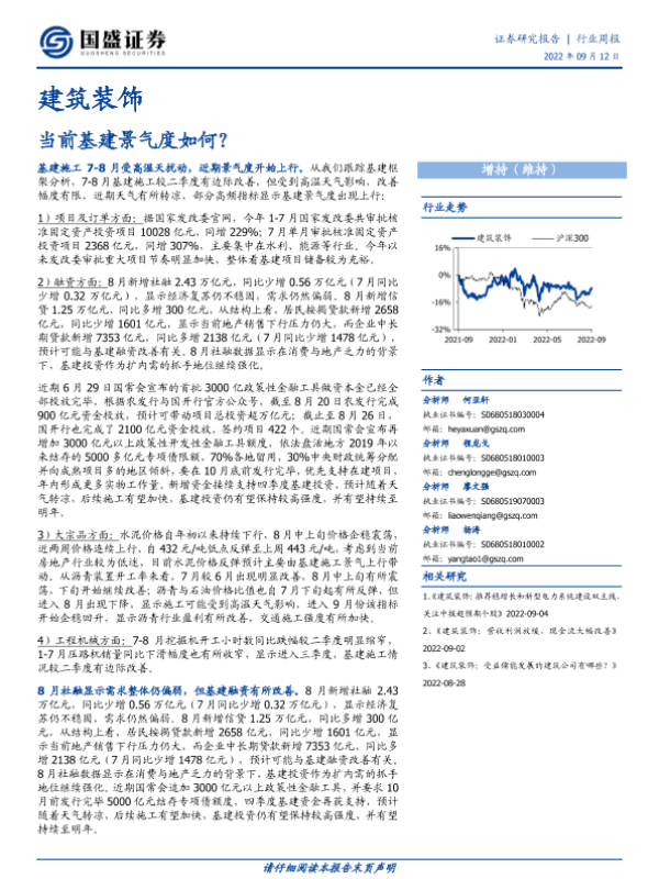 【国盛证券】【20220912】建筑装饰行业周报:当前基建景气度如何?-12页
