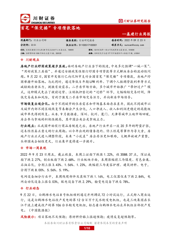 【川财证券】【20220923】基建行业周报:首笔“保交楼”专项借款落地-10页