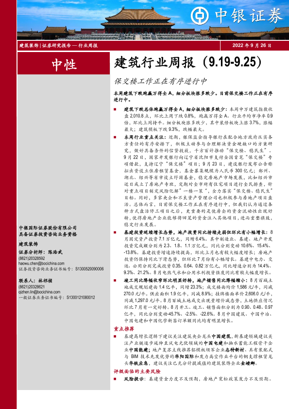 【中银证券】【20220926】建筑行业周报:保交楼工作正在有序进行中-14页