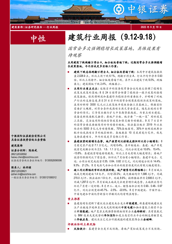 【中银证券】【20220919】建筑行业周报:国常会多次强调稳增长政策落地,具体效果有待观察-14页