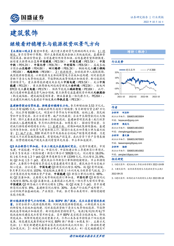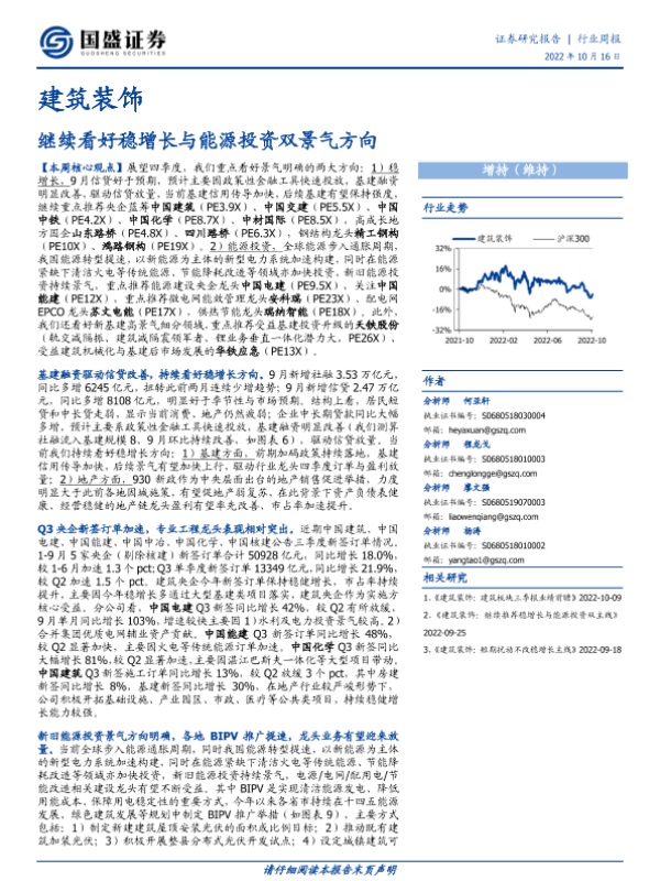 【国盛证券】【20221016】建筑装饰行业周报:继续看好稳增长与能源投资双景气方向-13页