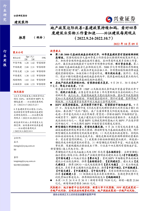 【兴业证券】【20221009】地产政策边际改善+基建政策持续加码,看好四季度建筑业实物工作量加速-43页