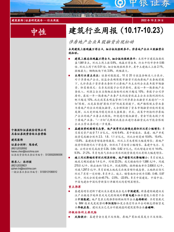 【中银证券】【20221024】建筑行业周报:涉房地产企业A股融资出现松动-14页