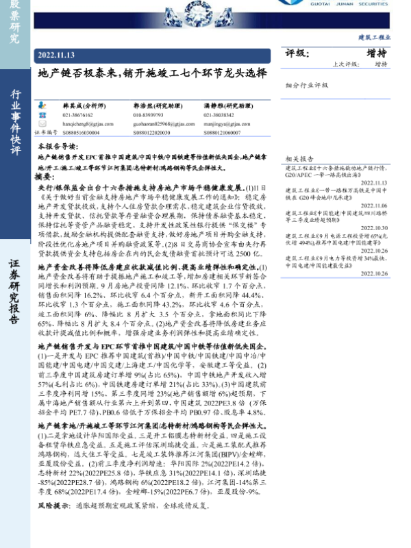 【国泰君安证券】【20221113】地产链否极泰来,销开施竣工七个环节龙头选择-12页
