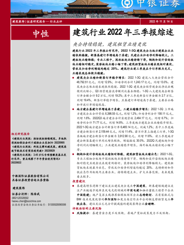 【中银证券】【20221114】建筑行业2022年三季报综述-32页