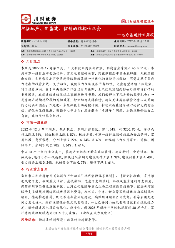 【川财证券】【20221210】电力基建行业周报:把握地产、新基建、信创的结构性机会-11页