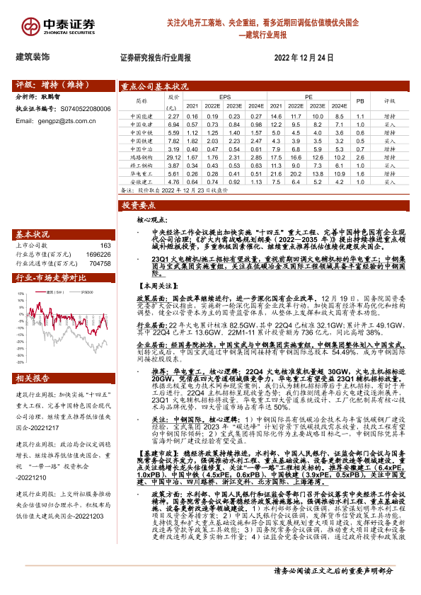【中泰证券】【20221224】建筑行业周报:关注火电开工落地、央企重组,看多近期回调低估值绩优央国企-25页