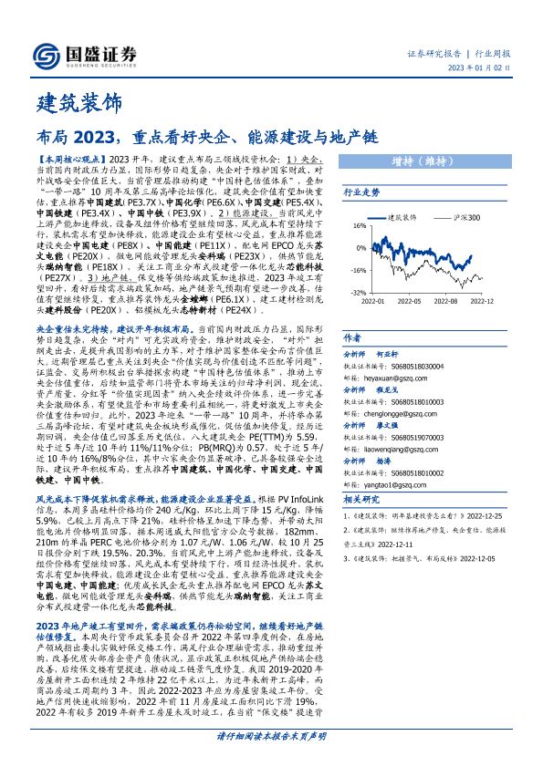 2023展望 地产链 央企重估 建筑装饰 能源建设