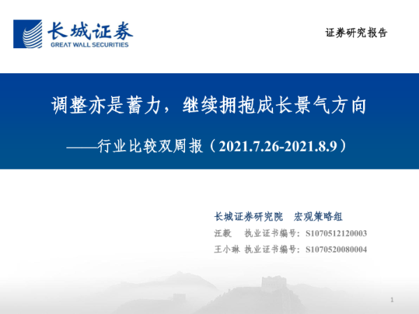 【长城证券】【20210809】行业比较双周报:调整亦是蓄力,继续拥抱成长景气方向-31页