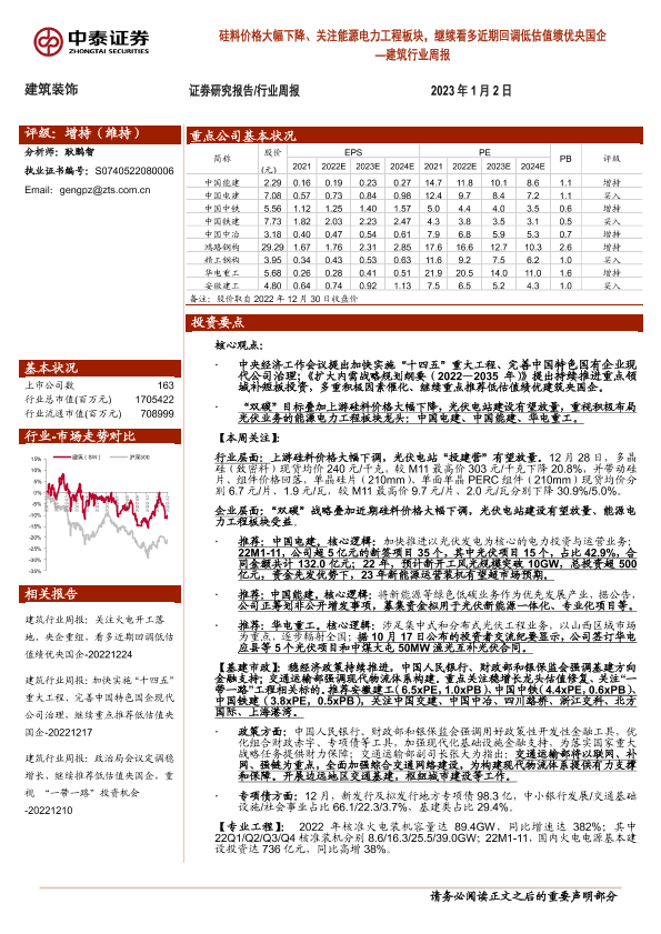 【中泰证券】【20230102】建筑行业周报:硅料价格大幅下降、关注能源电力工程板块,继续看多近期回调低估值绩优央国企-24页