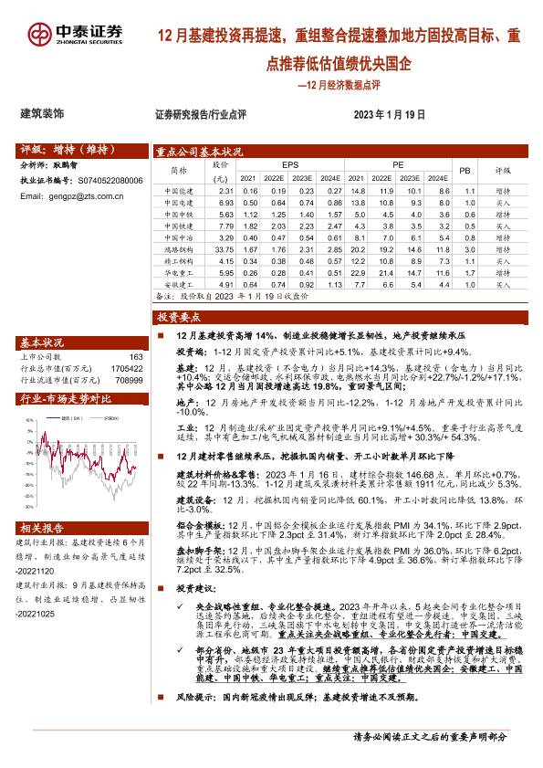 【中泰证券】【20230119】12月基建投资再提速,重组整合提速叠加地方固投高目标、重点推荐低估值绩优央国企-19页