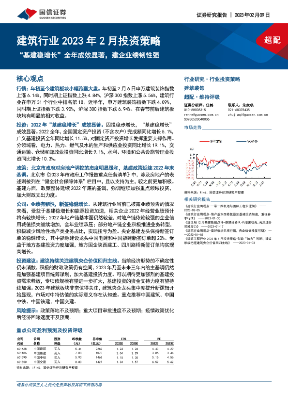 【国信证券】【20230209】建筑行业2023年2月投资策略:“基建稳增长”全年成效显著,建企业绩韧性强-13页