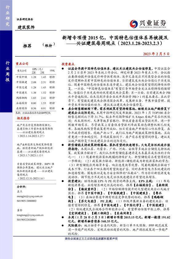 【兴业证券】【20230205】新增专项债2015亿,中国特色估值体系再被提及-35页