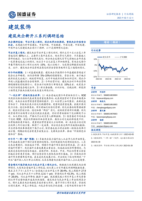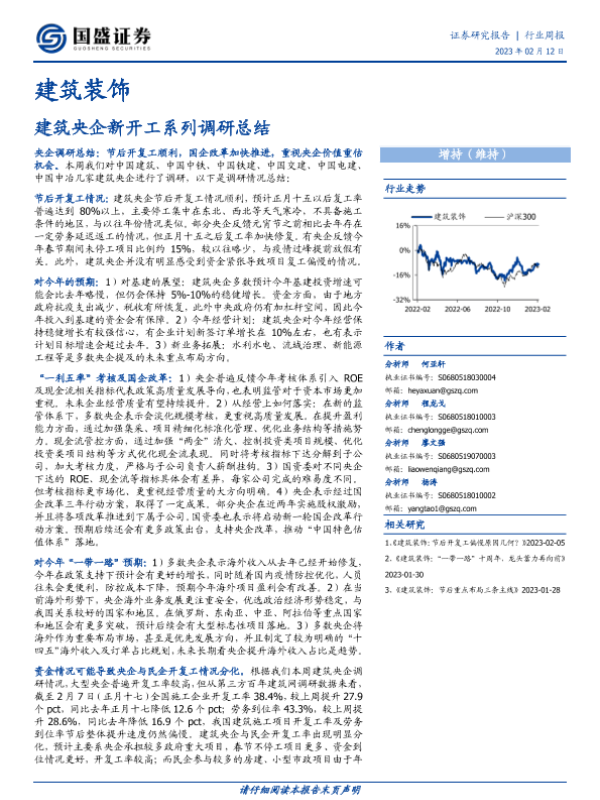 【国盛证券】【20230212】建筑装饰行业周报:建筑央企新开工系列调研总结-10页