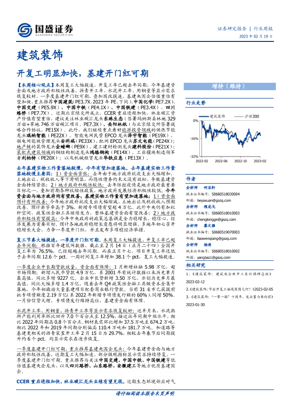 【国盛证券】【20230219】建筑装饰行业周报:开复工明显加快,基建开门红可期-12页