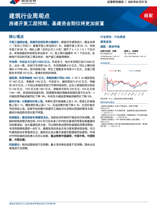 【国信证券】【20230227】建筑行业周观点:房建开复工超预期,基建资金到位将更加前置-11页