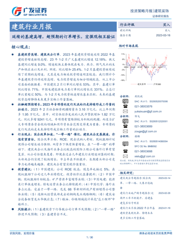 【广发证券】【20230316】建筑行业月报:延续的基建高增,超预期的订单增长,宏微观相互验证-30页