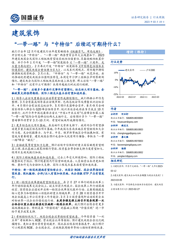 【国盛证券】【20230319】建筑装饰行业周报:“一带一路”与“中特估”后续还可期待什么?-13页